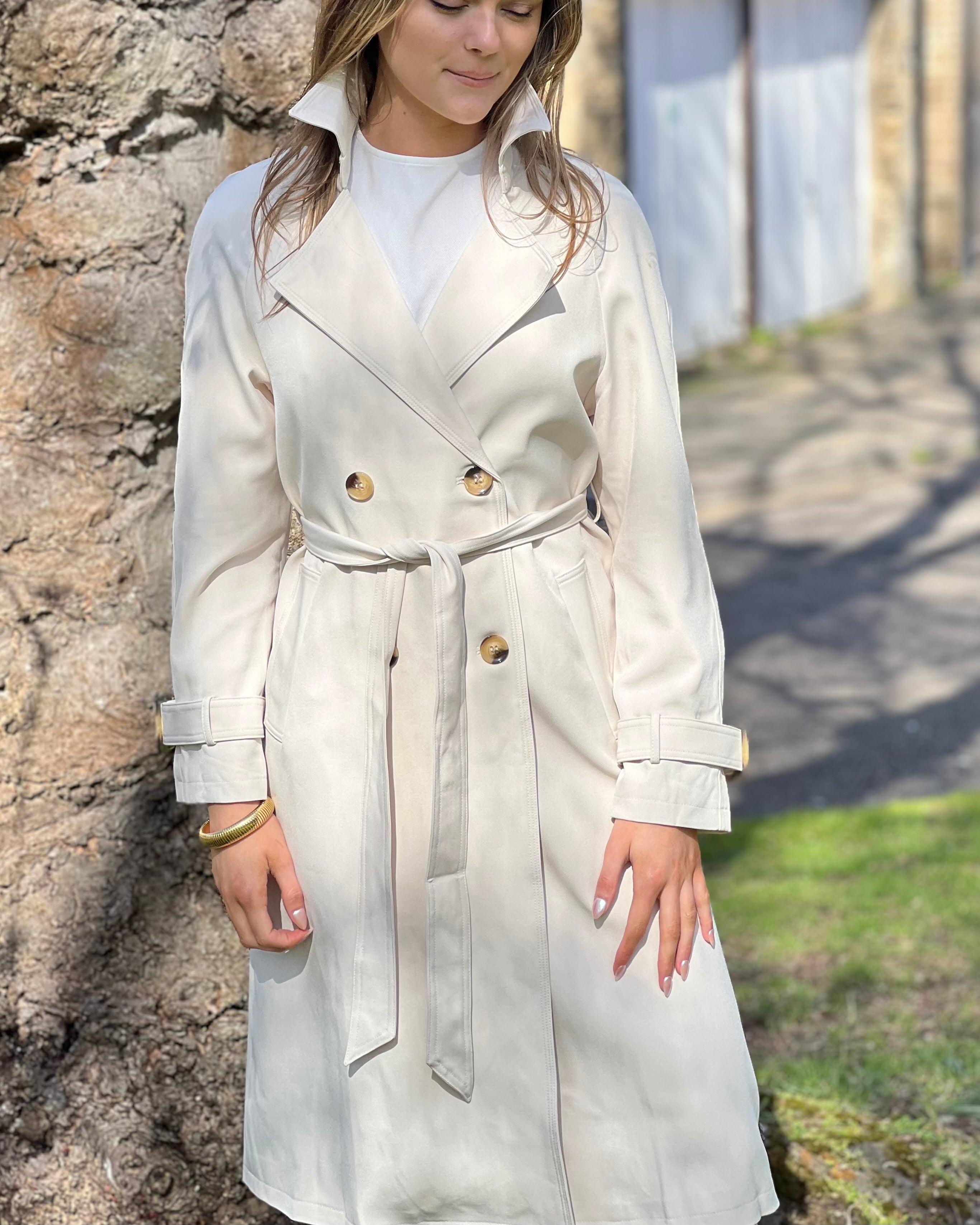 This classic lined trench coat combines timeless style with practical sophistication. Designed with a double-breasted front and a belted waist, it offers both elegance and functionality. The full lining ensures added comfort, making it perfect for all seasons. With its iconic collar and long sleeves, this trench coat is a versatile wardrobe essential that pairs effortlessly with both casual and dressy outfits, providing an elevated finish to any look.