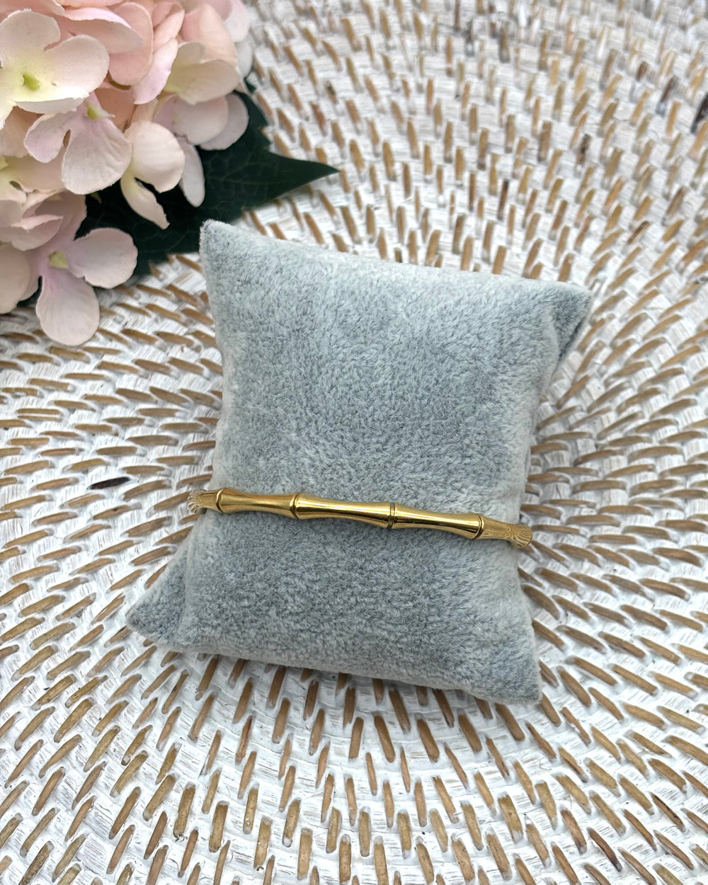 A sleek gold or silver plated stainless steel bangle with a modern bamboo-inspired design. Understated yet elegant, it brings a touch of contemporary charm to any look.
